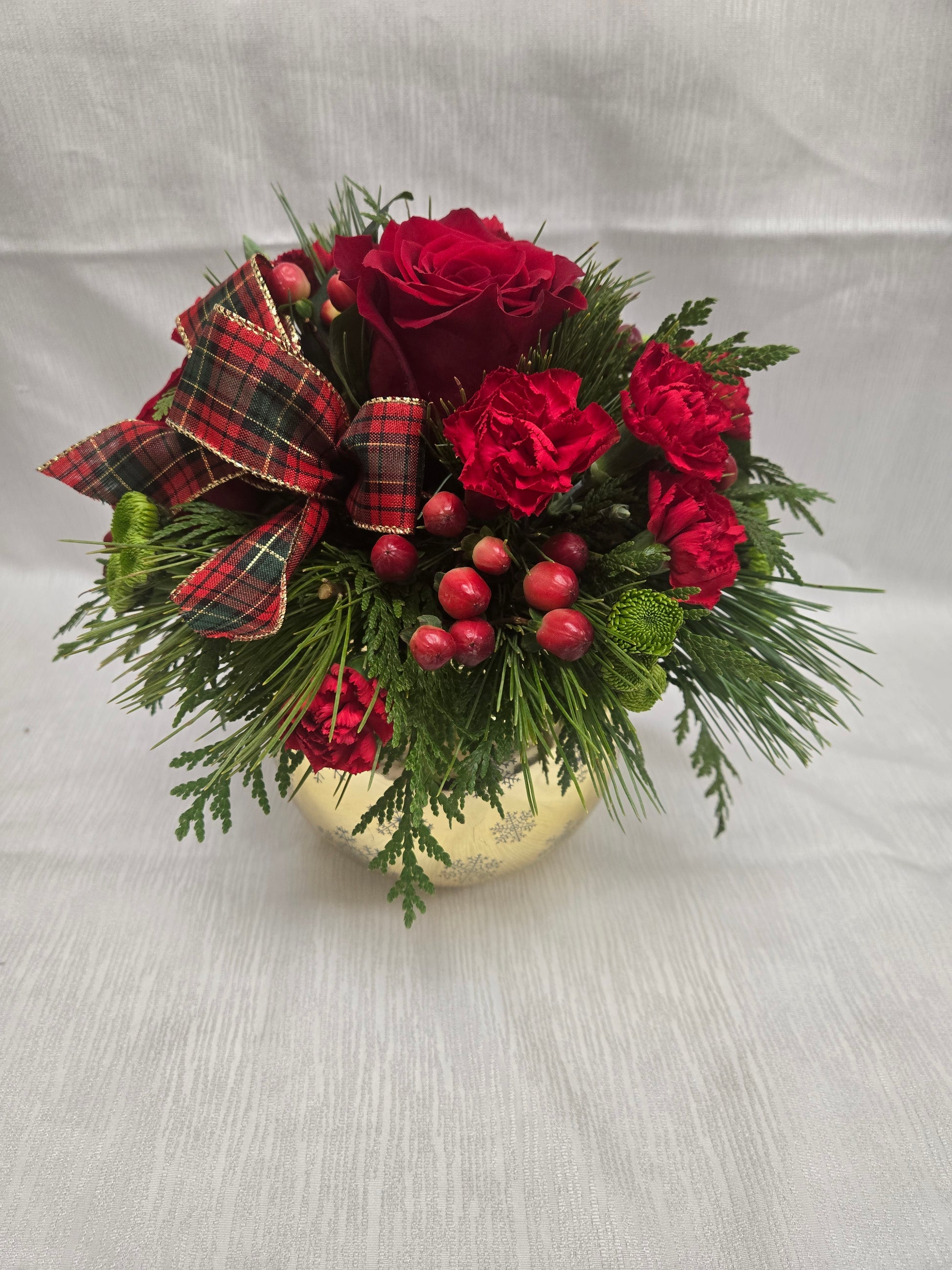 Add a touch of refined holiday charm to any space with our Winterberry Elegance Bouquet. This festive arrangement blends rich seasonal grenery with vibrant beries, creating a striking contrast that`s both warm and sophisticated.
